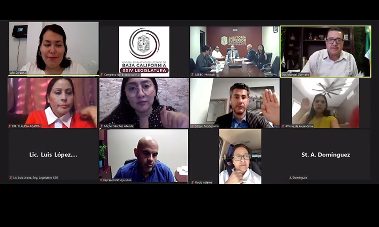 Participaron en esta sesión de la comisión dictaminadora, las diputadas y diputados: Julia Andrea González, Manuel Guerrero, Claudia Agatón, Sergio Moctezuma Martínez, Alejandrina Corral, Michel Sánchez, contándose con la presencia del Auditor Superior del Estado, Jesús García Castro y personal de la ASEBC, de Fernando Velarde, de Enlace Legislativo de Gobierno del Estado y de Luis López de Seguimiento Legislativo de la Secretaría General de Gobierno.