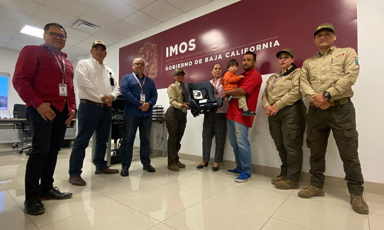 TIJUANA.- El Instituto de Movilidad Sustentable (IMOS) entregó una silla de seguridad infantil a un chofer de transporte público, cuya imagen circuló en redes sociales por operar la unidad de transporte con su niño de dos años sentado sobre él.