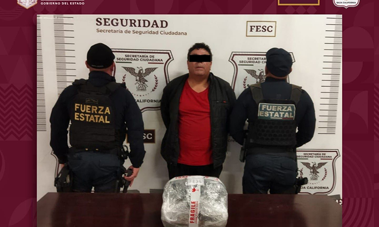 TIJUANA.- La Secretaría de Seguridad Ciudadana del Estado de Baja California (SSCBC) a través de la Fuerza Estatal de Seguridad Ciudadana (FESC) logró la detención de un hombre en posesión de más de dos kilogramos de metanfetamina, derivado de una denuncia anónima realizada a la central de radio C-4.
