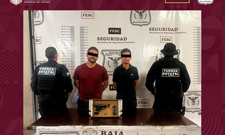 TIJUANA.- Dándole seguimiento a los trabajos enfocados en la reducción de incidente delictivo en el Estado de Baja California, elementos de la Fuerza Estatal de Seguridad Ciudadana (FESC) detuvieron a dos hombres que fueron sorprendidos con un arma de fuego corta que tenían en su poder; les fue confiscada y fueron turnados a la autoridad correspondiente.