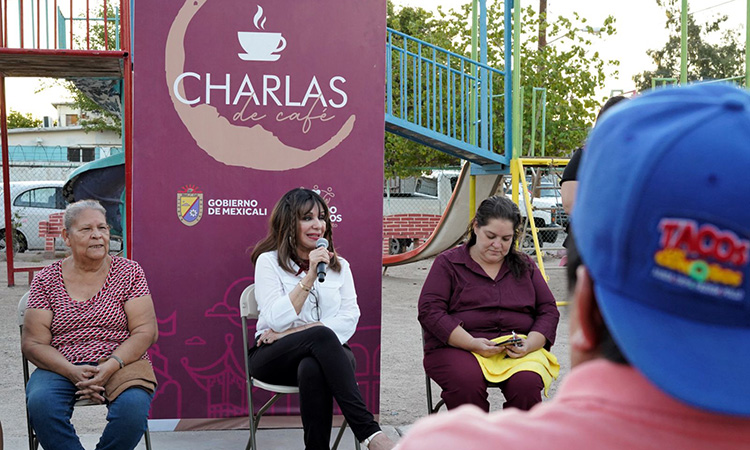 Durante el encuentro, la alcaldesa de Mexicali acompañada de los directores de Servicios Públicos, Juan Francisco Garza y de Obras Públicos, Alberto Ibarra, escuchó las principales inquietudes de las y los vecinos, respecto a los temas de seguridad, alumbrado público, perros callejeros y señalización vial.