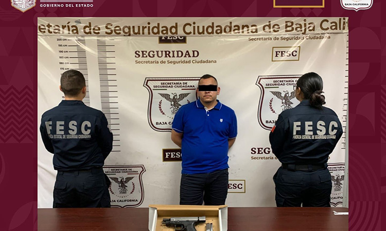 MEXICALI.- El trabajo operativo realizado por agentes de la Fuerza Estatal de Seguridad Ciudadana (FESC) el cual tiene como finalidad brindar mayor protección para las y los bajacalifornianos, derivó en la detención de dos hombres que portaban armas de fuego sin el permiso correspondiente, poniendo en peligro la integridad de los habitantes de los municipios de Mexicali y Tijuana.