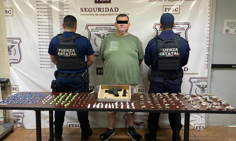 MEXICALI.- Una llamada al número de emergencias 9-1-1 fue punto clave para que agentes de la Fuerza Estatal de Seguridad Ciudadana (FESC), decomisaran una cantidad diversa de narcóticos y un arma de fuego, los cuales estaban en posesión de un hombre ligado a un grupo delictivo generador de violencia en el Estado.