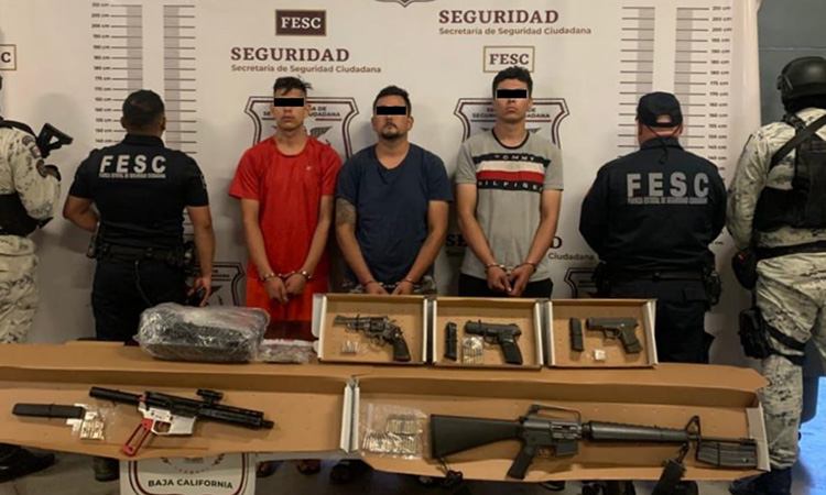 TIJUANA.- Tres personas detenidas y el decomiso de armas, cartuchos, esposas y chalecos tácticos, es el resultado de una rápida acción de la Fuerza Estatal de Seguridad Ciudadana (FESC) a una denuncia anónima realizada a la línea 089 en la ciudad de Tijuana; uno de los detenidos cuenta con orden de aprehensión activa por el delito de homicidio.