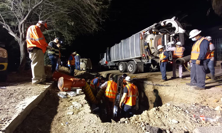 Para realizar los trabajos en cuestión se trasladó equipo y maquinaria pesada por parte de las cuadrillas del Departamento de Operación y Mantenimiento de Redes, que llevaron a cabo trabajos de desazolve y mantenimiento de 3 pozos de visita.