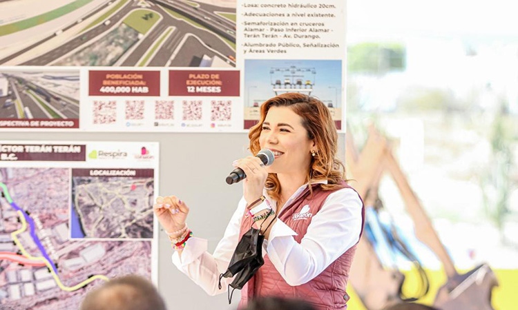 La Jefa del Poder Ejecutivo del Estado explicó que con dicho proyecto habrá libre flujo de sur a norte por el bulevar Héctor Terán Terán, además de una ágil incorporación hacia dicha vialidad desde la Vía Rápida Alamar. Puntualizó que se trata de una inversión aproximada de 450 millones de pesos y que la culminación de la obra está proyectada en alrededor de 12 meses.