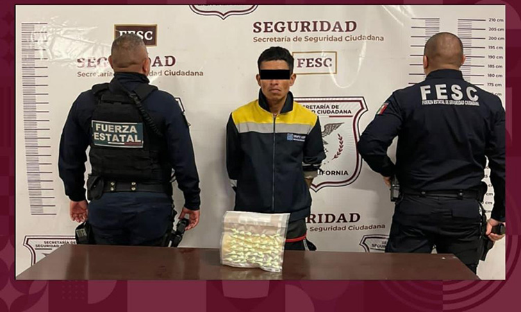 TIJUANA.- Diversos operativos de prevención y disuasión efectuados por agentes de la Fuerza Estatal de Seguridad Ciudadana (FESC) adscritos a la Secretaría de Seguridad Ciudadana de Baja California (SSCBC) derivaron en la detención de cuatro hombres involucrados presuntamente en actividades de narcomenudeo que realizaban en asentamientos ubicados en la ciudad de Tijuana. Diego Antonio “N”, de 28 años de edad y originario de Tapachula, Chiapas, se trató del primer hombre asegurado por parte de la autoridad estatal, cuando de manera sospechosa se escondió entre los carros estacionados. Fue sobre la calle Guadalajara entre Uxmal y Durango de la colonia Buena Vista en donde se le interceptó para solicitarle una inspección precautoria, localizando entres sus prendas de vestir 50 envoltorios de plásticos conteniendo la droga.