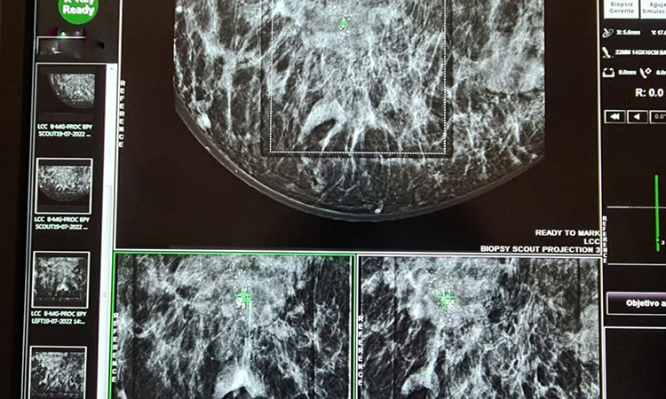 Miguel Bernardo Romero Flores, director de Hospital General de Mexicali (HGM), comentó que el estudio de biopsia por esterotaxia es sofisticado y se realiza en mujeres con alguna alteración en su mamografía, como lo pueden ser las microcalcificaciones; es un procedimiento de alta precisión que se hace a través del mastógrafo, el cual consta con una duración de 40 a 60 minutos.