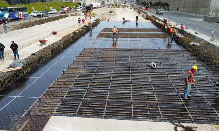 La SIDURT trabaja para colocar las losas de rodamiento en la parte superior del puente vehicular.