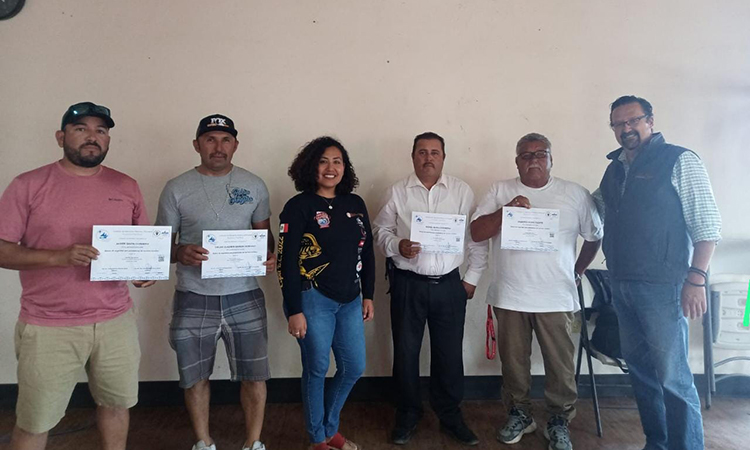 SAN QUINTÍN.- Luego de recibir capacitación certificada sobre seguridad en el mar, 36 personas dedicadas a la pesca y los servicios de pesca deportiva de Bahía de los Ángeles recibieron sus respectivas constancias por parte de personal de la Secretaría de Pesca y Acuacultura (SEPESCA), a cargo de Alma Rosa García Juárez.