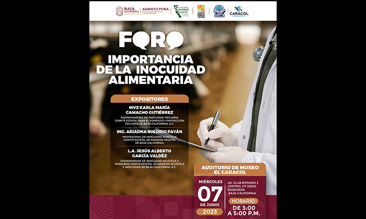 ENSENADA.- En el marco del día Mundial de la Inocuidad Alimentaria, la Secretaría de Agricultura y Desarrollo Rural (SADERBC) invita a participar en el foro denominado “Importancia de la Inocuidad Alimentaria”.