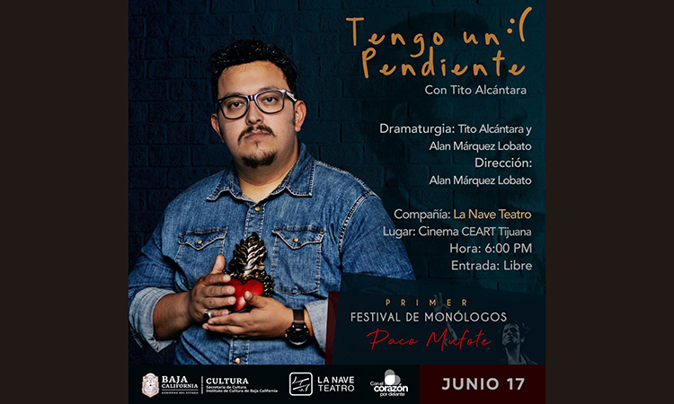 TIJUANA.- Este sábado 17 de junio, en el CEART Tijuana continuarán las actividades de la primera edición del Festival de Monólogos “Paco Mufote”, el cual busca impulsar la actividad teatral independiente en coordinación con la Secretaría de Cultura de Baja California, rindiendo homenaje al fallecido actor y director escénico tijuanense.