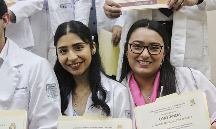 Los egresados recibieron su constancia de conclusión por parte del coordinador de internado y servicio social de Universidad Xochicalco, Jaime Moreno Duarte; el subdirector de la Facultad de Medicina de la UABC, Dr. Hiram Jaramillo Ramírez; el jefe de Enseñanza de HGM, Diego Fernando Ovalle Marroquín, y subdirector médico del HGM, Román de la Torre Valenzuela y del director del mismo, Miguel Bernardo Romero.