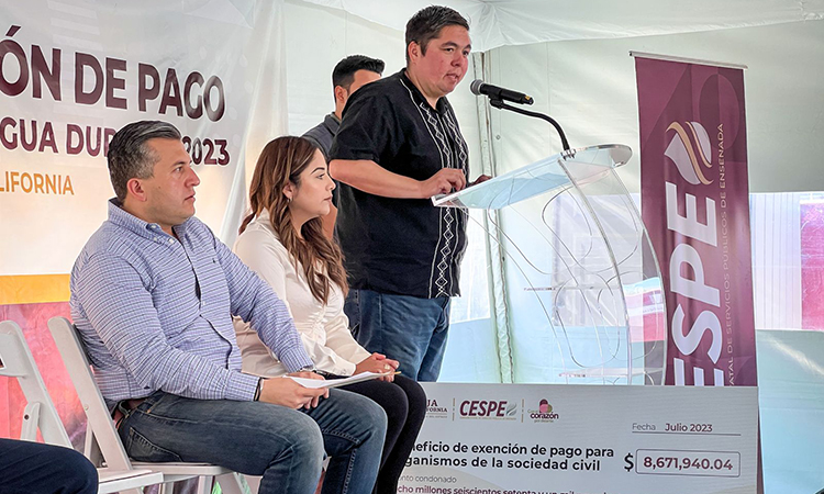 ENSENADA.- La Comisión Estatal de Servicios Públicos de Ensenada (CESPE) hizo entrega de la constancia de exención de pago del servicio de agua a representantes de más de 80 asociaciones y/o grupos de la sociedad civil organizada.
