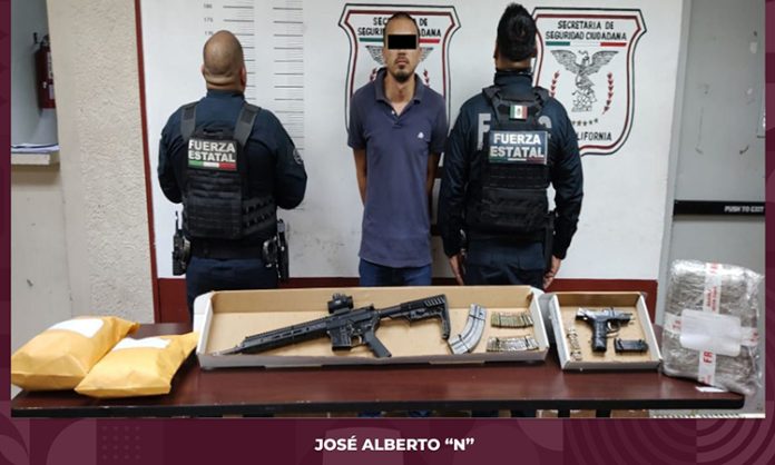 MEXICALI.- Un hombre identificado como José Alberto “N”, fue detenido en flagrancia en el valle de Mexicali por agentes de la Fuerza Estatal de Seguridad Ciudadana (FESC); en el vehículo en el que viajaba se localizaron alrededor de 2 mil 500 envoltorios que contenían metanfetamina, casi un kilogramo de marihuana, 2 armas de fuego abastecidas con varios cartuchos útiles y un chaleco antibalas.