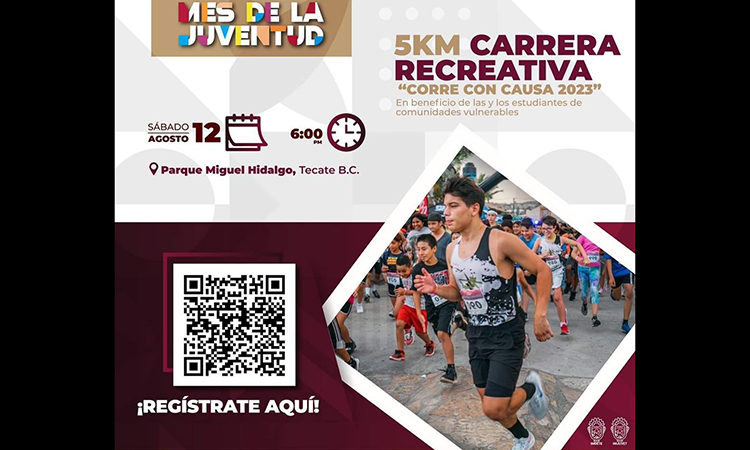 TECATE.- Como parte de la celebración del Día Internacional de la Juventud y con el propósito de fomentar actividades deportivas que impulsen la participación de las juventudes, el Instituto de la Juventud de Baja California invita a participar en la «Carrera Recreativa 5 km» la cual se llevará a cabo en el municipio de Tecate.