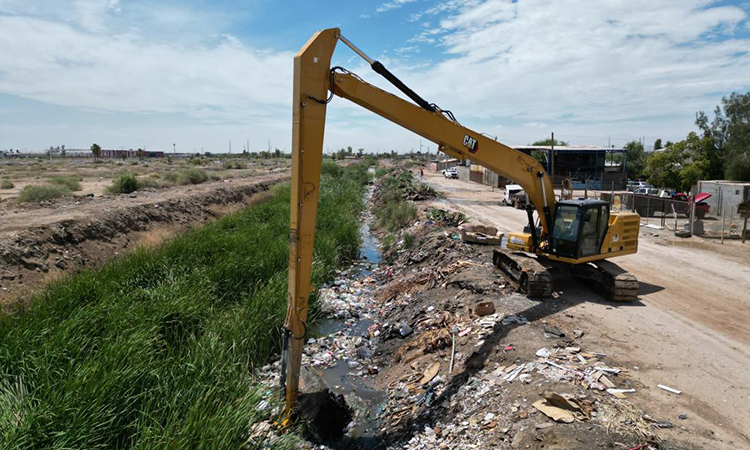 MEXICALI. – La Comisión Estatal de Servicios Públicos de Mexicali (CESPM) ha intensificado los trabajos de desazolve del Dren Mexicali, que atraviesa y beneficia importantes colonias de la ciudad.
