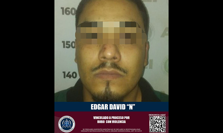 MEXICALI.- La Fiscalía Regional de Mexicali obtuvo la vinculación a proceso de Edgar David “N” por presuntamente cometer el delito de robo con violencia.