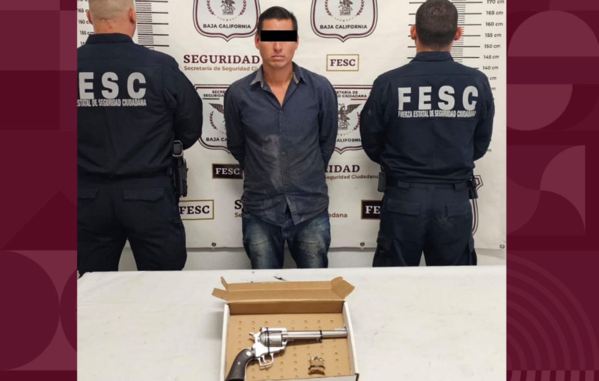 El sujeto de 33 años y originario de Ensenada, al darse cuenta de la presencia de la autoridad estatal, trató de ingresar a una vivienda, sin embargo, la pronta reacción de los oficiales de la FESC logró impedir que escapara del lugar. Tras revisarlo corporalmente, se confirmó que el objeto avistado se trataba de un arma de fuego tipo revolver de calibre .44 milímetros, abastecido en el área del tambor de tres cartuchos útiles.