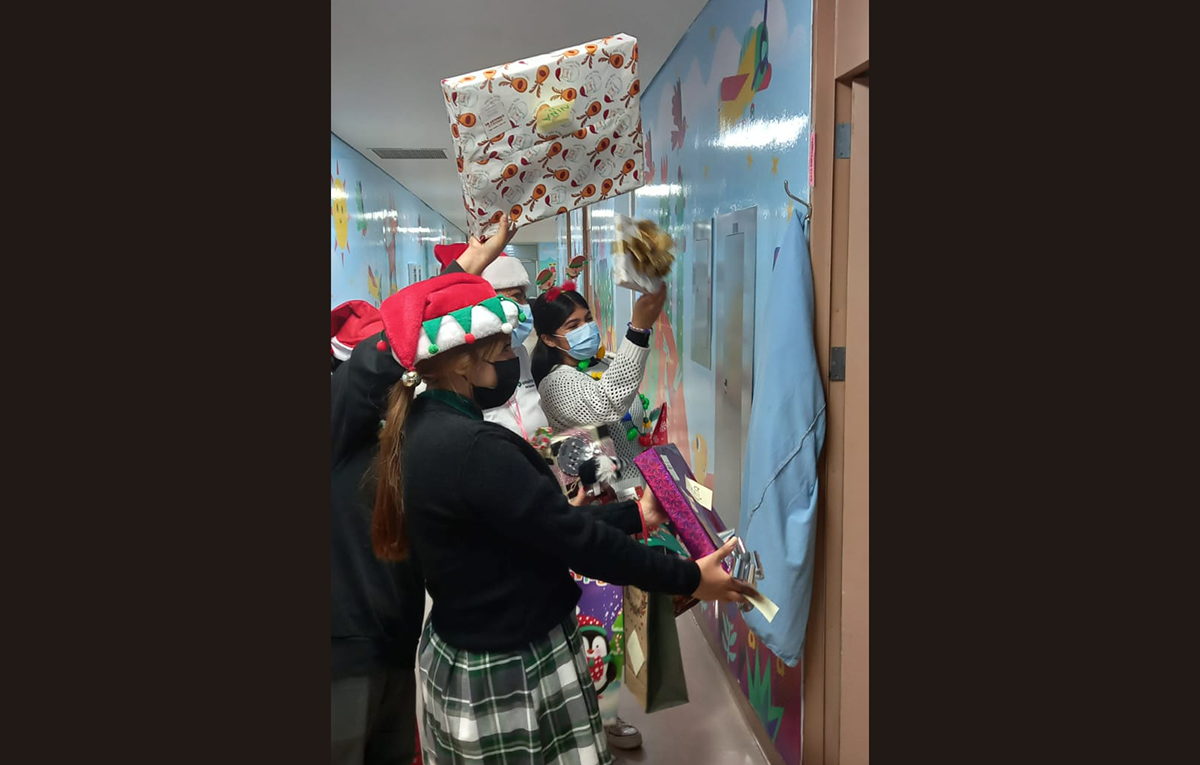 Hicieron la entrega de obsequios siete estudiantes en la clínica 1 del IMSS en Tijuana a 18 pacientes de la sala de Centros de Referencia Estatal para la atención del niño y de la niña con cáncer (Oncocrean), donde están las y los diagnosticados con esta enfermedad en sus primeras y severas etapas, y donde se encuentran aislados por cuestión de salud, en este caso se les hizo la entrega directamente a las madres y padres de familia.