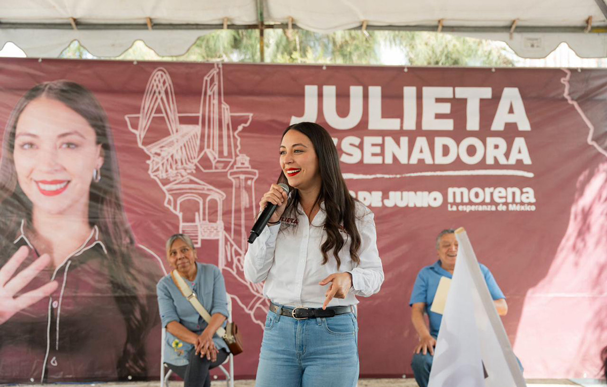 “Es un momento crucial para la 4T, la Dra. Claudia Sheinbaum es quien dará continuidad a la transformación defendiendo las becas, pensiones y apoyos para el pueblo, asegurando que no solo continuarán, sino que serán mejorados” afirmó Julieta Ramírez. También compartió con la audiencia su emoción de que México finalmente tendrá su primera presidenta, la cual será de Morena.