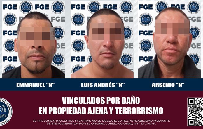 Los imputados son Arsenio “N”, Emmanuel “N” y Luis Andrés “N”, a quienes se les acusa de los hechos delictivos que ocurrieron el pasado 17 de junio, cuando llegaron a bordo de un pick up Ford F150 color blanco, al bar “La Conse” y arrojaron varias botellas de vidrio que contenían una sustancia inflamable (gasolina), a las que le prendieron fuego a la mecha con un encendedor.