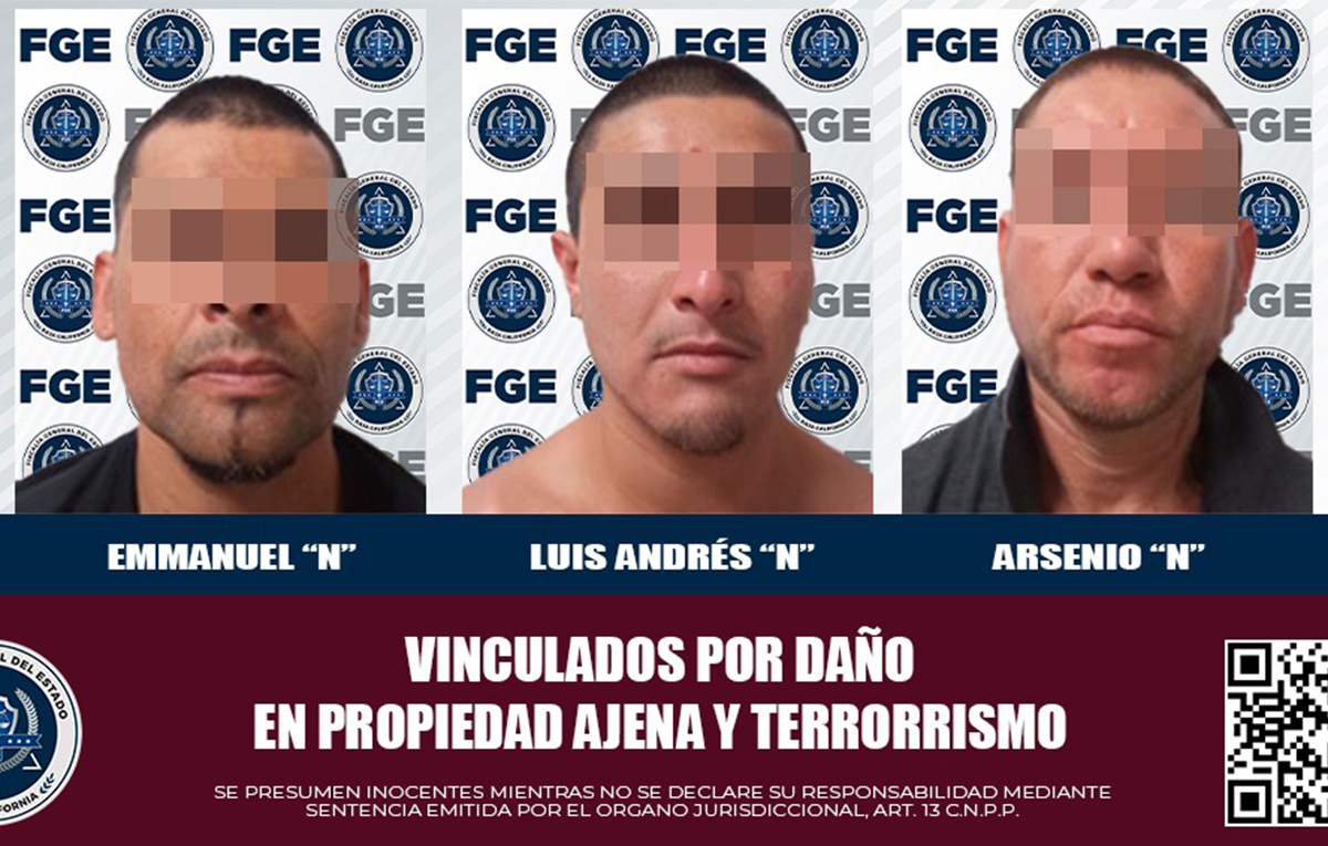 MEXICALI.- La Fiscalía General del Estado, obtuvo la vinculación a proceso de tres presuntos integrantes de una célula delictiva procedente de Sonora, acusados de causar daño a un restaurante bar.