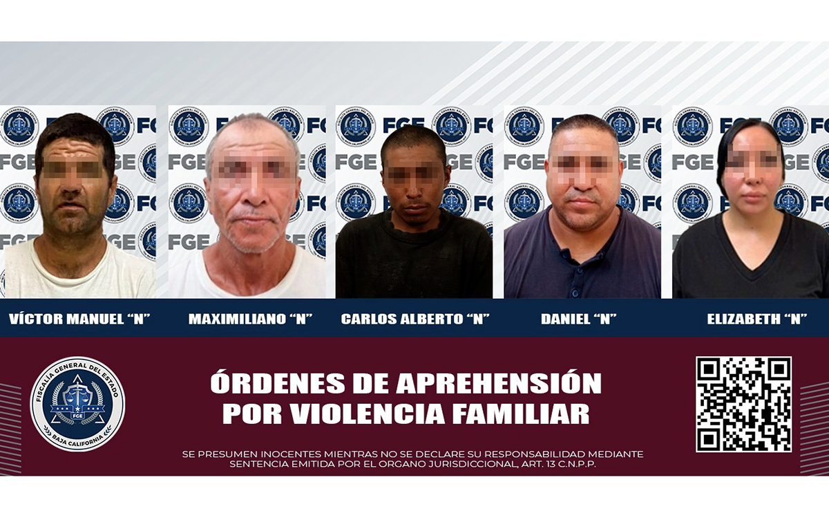 MEXICALI.- Elementos de la Agencia Estatal de Investigación (AEI) adscritos a la Fiscalía Regional de Mexicali lograron el aseguramiento de cinco sujetos, quienes contaban con mandatos judiciales por agredir a sus familiares.