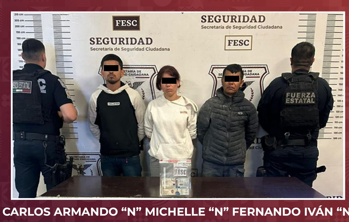 Los detenidos se identificaron como Fernando Iván “N” de 30 años apodado ‘Flaco’ y/o ‘Lavadita’, Carlos Armando “N” de 28 años alias ‘El Fresa’, y Michelle “N”, de 21 años de edad, los tres originarios de Tijuana, mismos que fueron puestos a disposición de la Fiscalía General del Estado (FGE), autoridad correspondiente en determinar su situación legal con base a sus investigaciones.