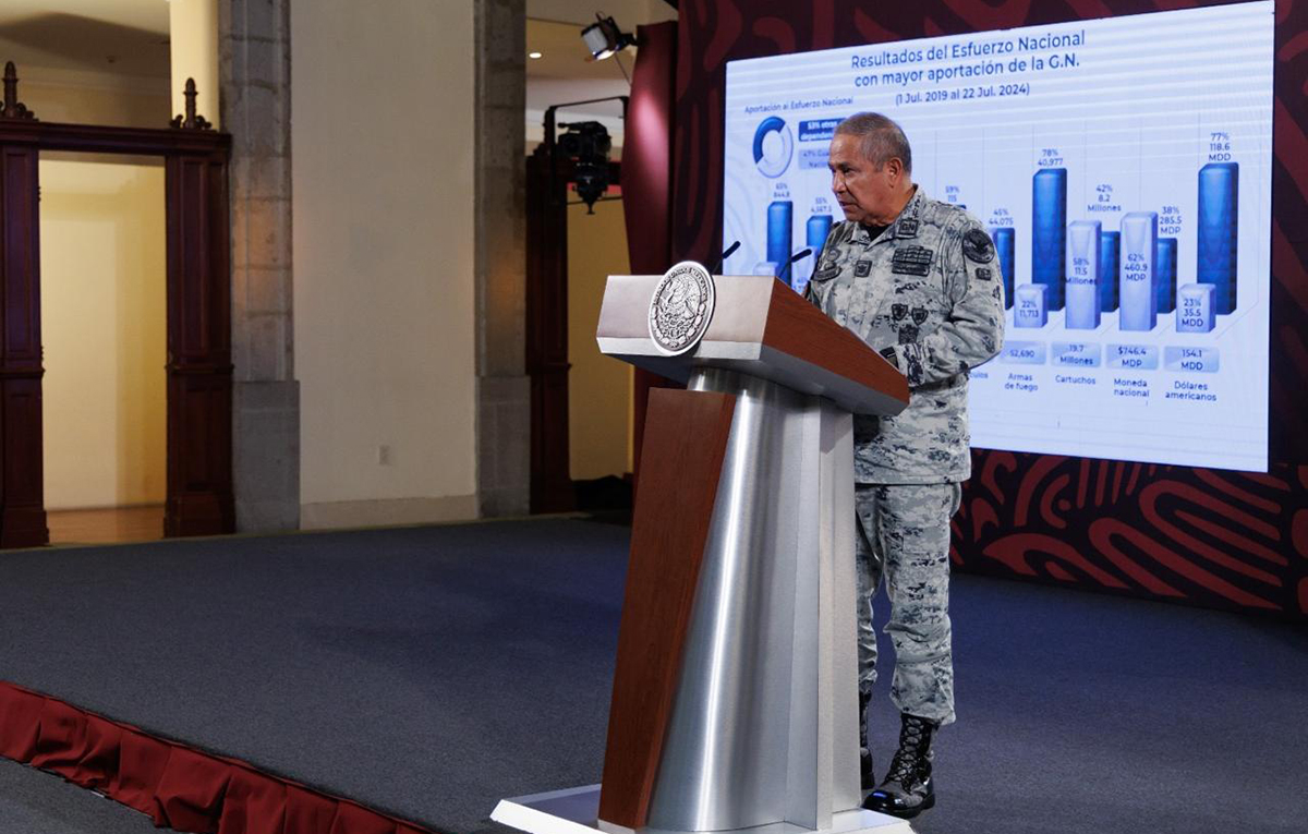 En cumplimiento de la Estrategia Nacional de Seguridad Pública y de la Política de Cero Impunidad del gobierno federal, la Secretaría de la Defensa Nacional (Sedena), la Secretaría de Marina (Semar), la Secretaría de Seguridad y Protección Ciudadana (SSPC) y la Guardia Nacional (GN), presentaron resultados del combate a la delincuencia en México, registrados en el periodo del 9 al 22 de julio del presente año.