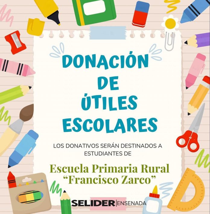 ENSENADA.- Con el fin de apoyar a infantes de Escuela Primaria Francisco Zarco, el Instituto Municipal de la Juventud de Ensenada y Selider Ensenada invitan a participar a la Colecta de Útiles Escolares, con dos sedes para entregar los donativos.