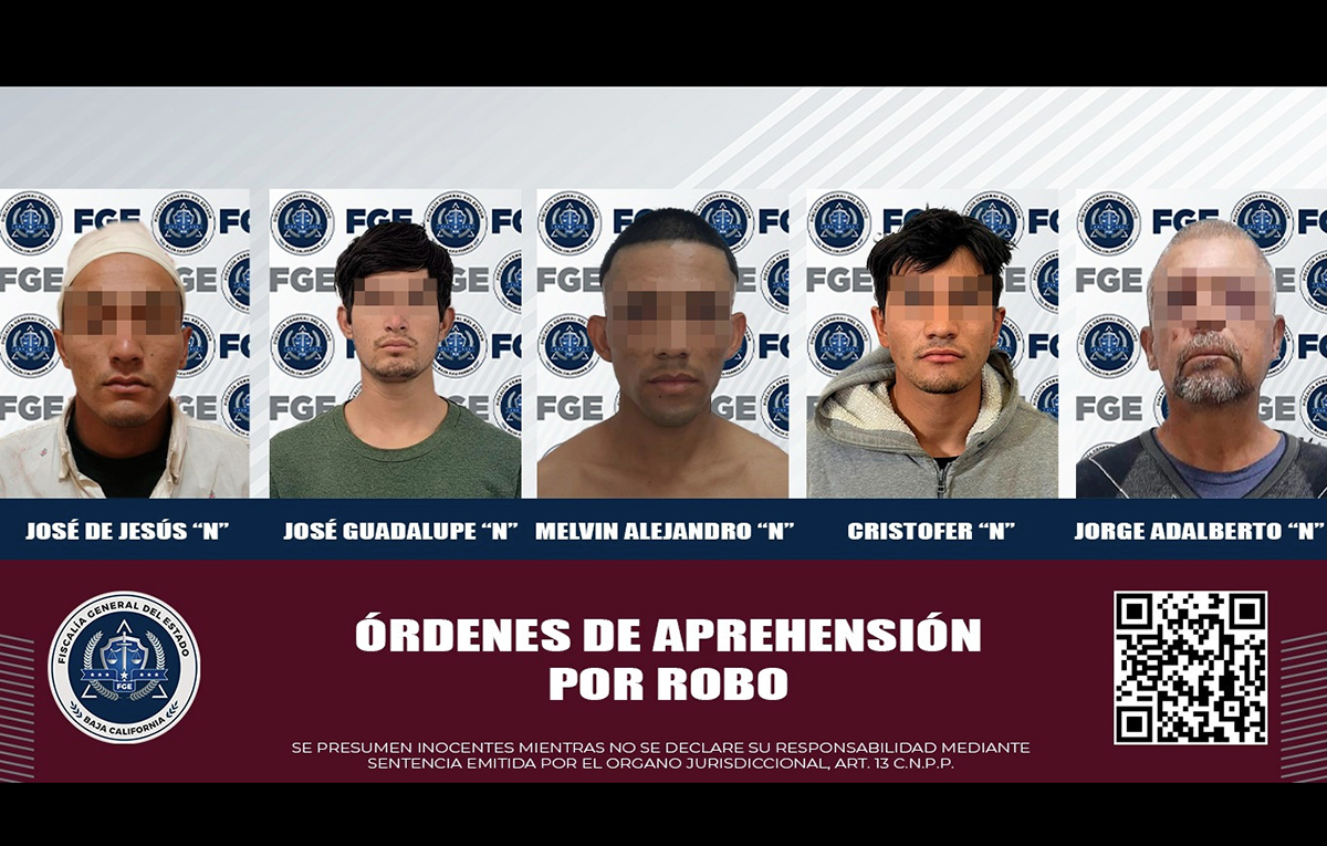 MEXICALI.- Elementos de la Fiscalía Regional de Mexicali, a través de diversas acciones efectuadas, lograron la aprehensión de cinco prófugos de la justicia por estar relacionados en los delitos de robo en sus diferentes modalidades.