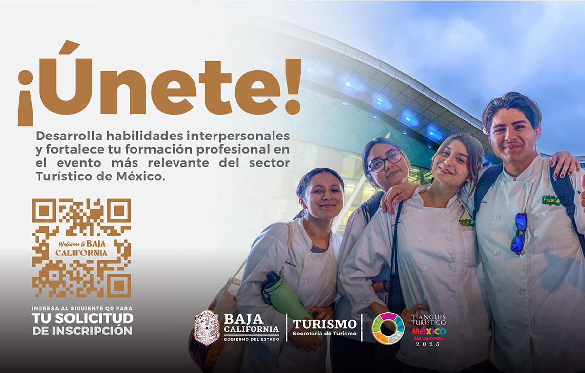 PLAYAS DE ROSARITO.– La Secretaría de Turismo de Baja California invita a estudiantes de las licenciaturas en Turismo, Gastronomía, Mercadotecnia, Comunicación, Relaciones Internacionales y áreas afines a participar en la 49ª edición del Tianguis Turístico de México 2025, el evento más importante del sector turístico nacional.