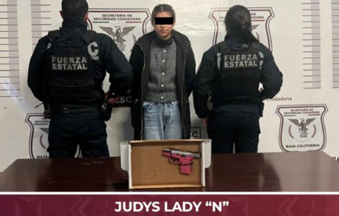 Al llegar al lugar referido sobre la calle Sonora, oficiales de la Secretaría de Seguridad Ciudadana de Baja California (SSCBC), detuvieron a una persona del sexo femenino, identificada como Judys Lady “N”, de 21 años y originaria de Tijuana, Baja California.