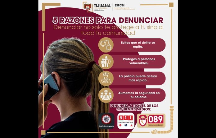 TIJUANA.-Salvaguardar la integridad de las familias tijuanenses es prioridad para el gobierno del presidente Ismael Burgueño Ruiz, en este sentido, la Secretaría de Seguridad y Protección Ciudadana Municipal (SSPCM), bajo la titularidad de José Alejandro Avilés Amezcua, hace un atento llamado a la ciudadanía para denunciar cualquier actividad sospechosa o delictiva que afecte la seguridad de la comunidad.