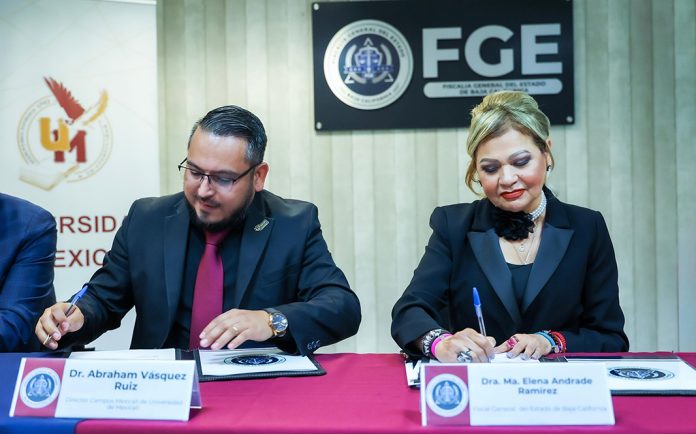MEXICALI.- La Fiscalía General del Estado y la Universidad Mexicali, firmaron un convenio de colaboración con el objetivo de contribuir en la formación teórico-práctica de los estudiantes.