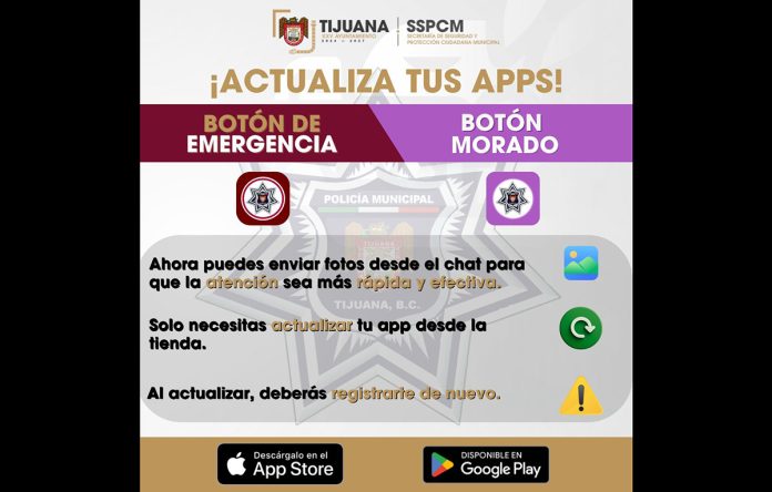 TIJUANA.- La Secretaría de Seguridad y Protección Ciudadana Municipal (SSPCM), informa a la comunidad que la aplicación móvil ‘Botón de Emergencia’ y ‘Botón Morado’ ha sido actualizada con una nueva función diseñada para mejorar la calidad del servicio y la atención a la ciudadanía.