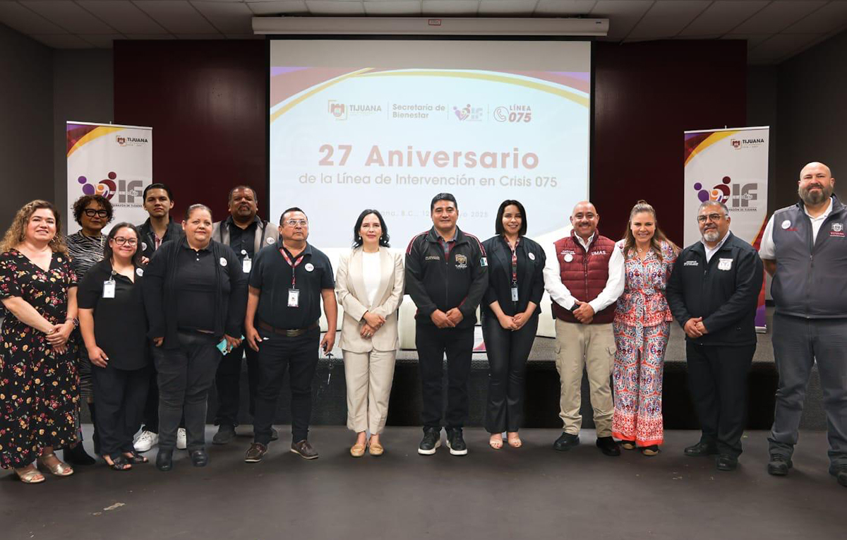 TIJUANA.- El Gobierno del presidente municipal, Ismael Burgueño Ruiz, a través de la Secretaría de Bienestar, celebró el 27 aniversario de la Línea de Intervención en Crisis 075, del Sistema para el Desarrollo Integral de la Familia (DIF Tijuana).