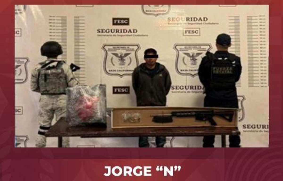 En otro punto de la ciudad fronteriza, sobre la calle Artículo 123 en la colonia Obrera Primera Sección, fue aprehendido Jorge “N”, de 32 años y originario de Tijuana; en la intervención que se le hizo al presunto generador de violencia se le aseguró un arma de fuego larga 5.56 Nato, con un cargador abastecido con 30 cartuchos útiles de calibre .223 mm y una mochila en la que ocultaba una bolsa de plástico que contenía marihuana con un peso aproximado de 337 gramos.