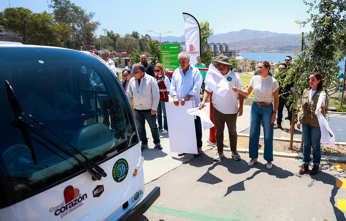 La gobernadora también dio el banderazo de salida de dos camiones eléctricos de transporte interno con capacidad para 14 pasajeros, que serán de uso gratuito para los visitantes, esto en horario de 12:00 a 20:00 horas, con una sola unidad de martes a jueves, y con dos unidades de viernes a domingo.