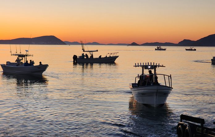 BAHÍA DE LOS ÁNGELES.- Este sábado arrancaron 31 equipos integrados por más de 150 participantes en el torneo internacional de pesca deportiva “2 Mares Baja”, que promueve la Administración de la Gobernadora Marina del Pilar Avila Olmeda, a través de la Secretaría de Pesca y Acuacultura (SEPESCA BC).