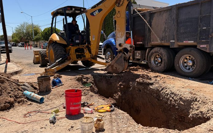 Mexicali. – La Comisión Estatal de Servicios Públicos de Mexicali (CESPM) realiza actualmente una obra de reposición de tubería de agua potable en la colonia Las Fuentes, con el objetivo de actualizar la infraestructura existente y sustituir las líneas de conducción que ya han cumplido su ciclo de vida útil.