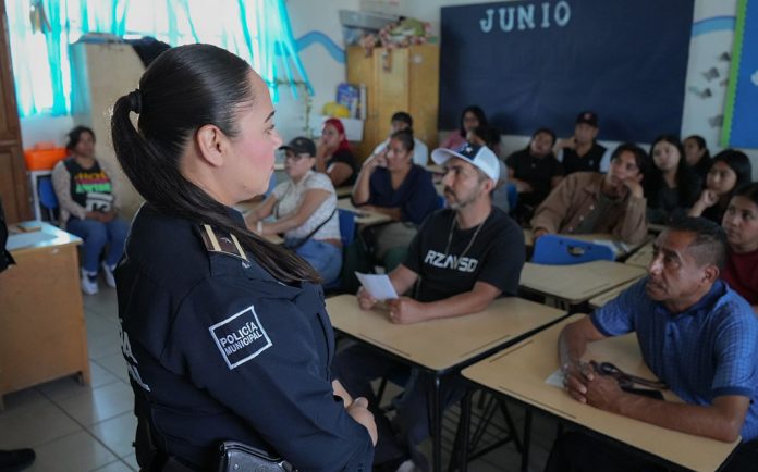 TIJUANA.- La Secretaría de Seguridad y Protección Ciudadana Municipal (SSPCM), llevó su programa “Escuela Informada, Escuela Segura”, al platel Tierra Libertad, ubicado en la colonia 3 de octubre, favoreciendo a 598 alumnos, distribuidos en 18 grupos.