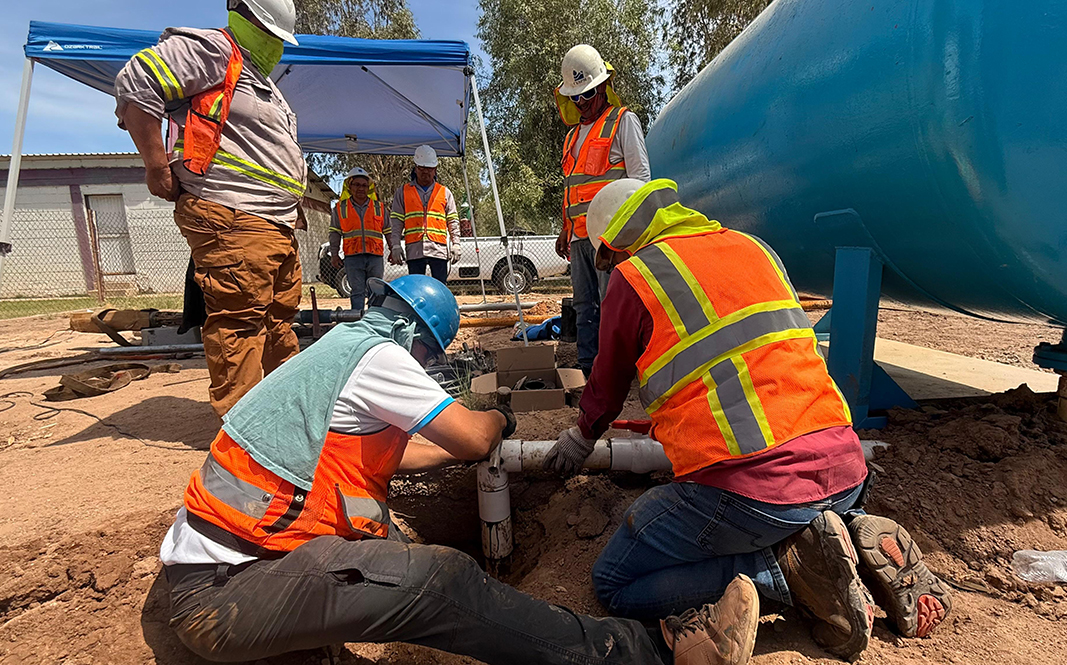 En la planta potabilizadora del ejido Veracruz 1, personal de conservación reemplazó un tramo de tubería de retro lavado de los filtros, acción que permitirá un funcionamiento más eficiente del sistema de filtración.