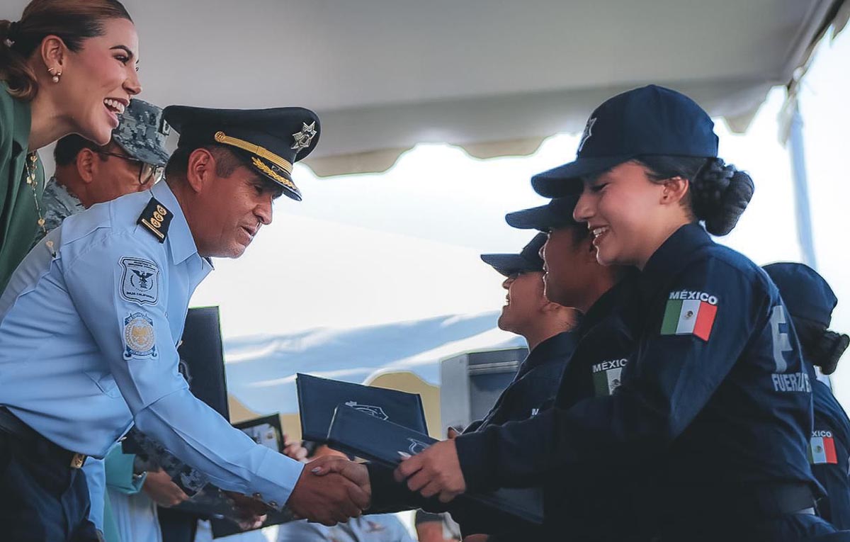En su mensaje, la gobernadora Marina del Pilar enfatizó el compromiso de su administración de contar con policías cada vez más profesionales, mejor capacitados, pero sobre todo policías cada vez más cercanos a la gente, con un entrenamiento y una preparación de muy alto nivel de exigencia en lo táctico, en lo físico, con una sólida formación en materia de derechos humanos y justicia con enfoque y perspectiva de género.