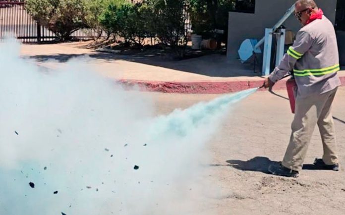 Mexicali. – La Comisión Estatal de Servicios Públicos de Mexicali (CESPM) llevó a cabo una capacitación dirigida al personal de redes de la Zona 1, ubicada en Los Santorales, enfocada en el uso y manejo seguro de extintores.