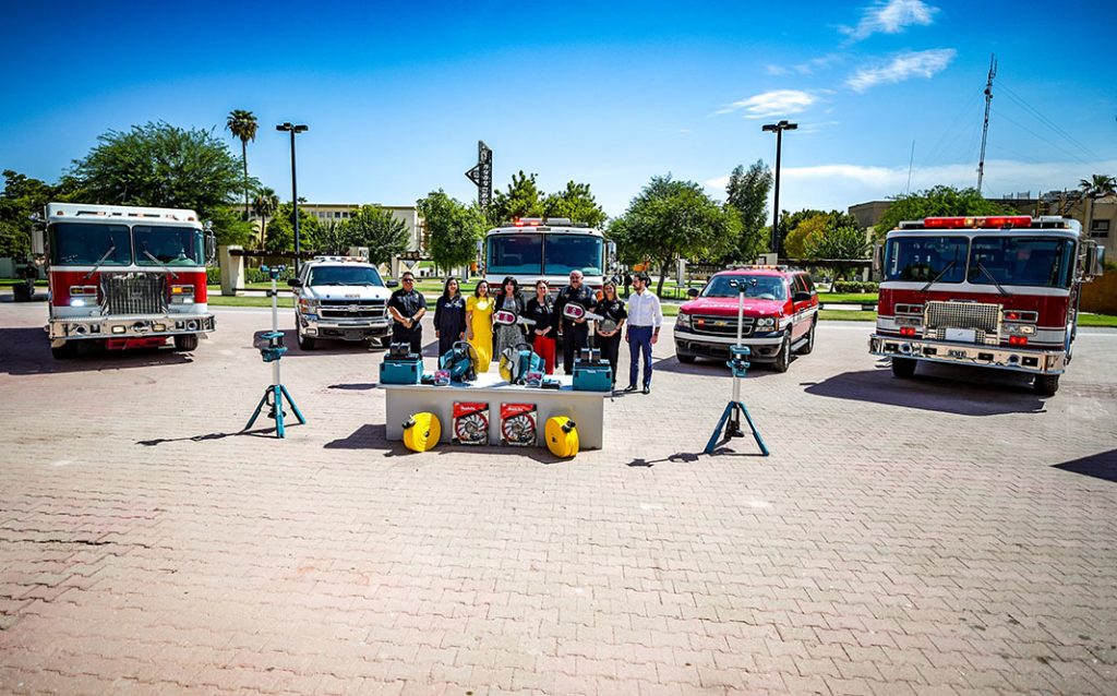 Para fortalecer al cuerpo de bomberos, la presidenta municipal entregó tres máquinas extintoras: una donada por la ciudad de El Centro, California; otra por Baja Bridges, y una más adquirida a través de la campaña de Recaudación de Rentas de «2 pesos».