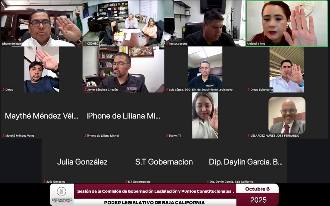 MEXICALI.- En sesión ordinaria la Comisión de Gobernación, Legislación y Puntos Constitucionales del Congreso del Estado aprobó dos dictámenes clave para el fortalecimiento institucional de Baja California: la integración del nuevo Consejo Consultivo de la Comisión Estatal de los Derechos Humanos y la ratificación del nombramiento de la titular de la Secretaría Anticorrupción y Buen Gobierno.