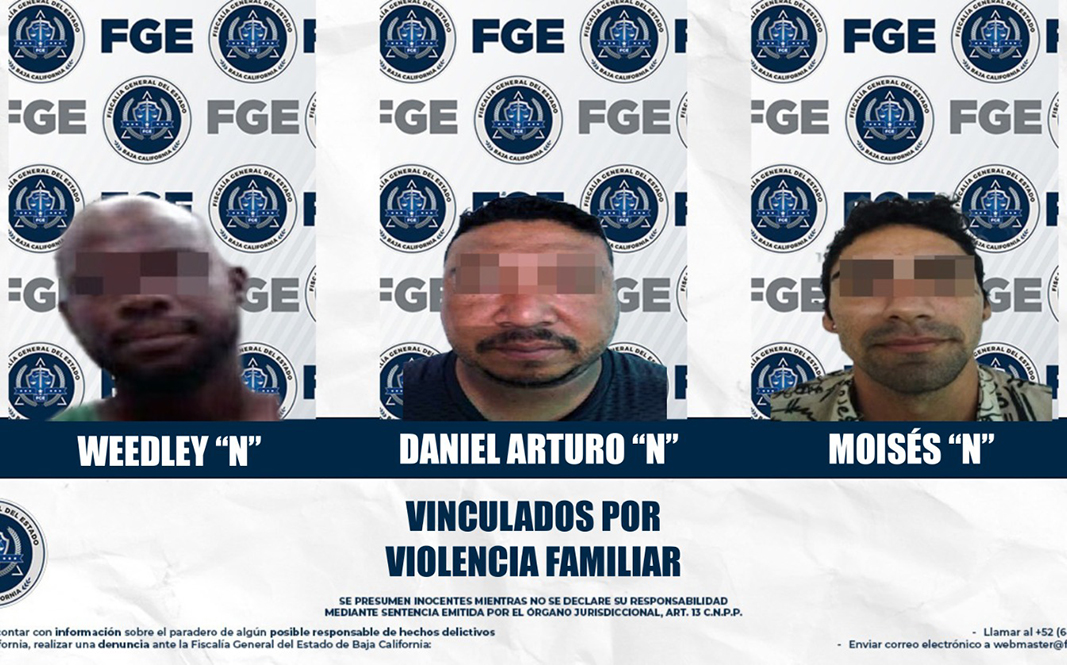 MEXICALI.- La Fiscalía Regional de Mexicali, a través de la Unidad de Investigación con Detenidos Poniente y Detenidos Oriente, logró el inicio de proceso penal en contra de tres acusados por agredir a sus familiares.
