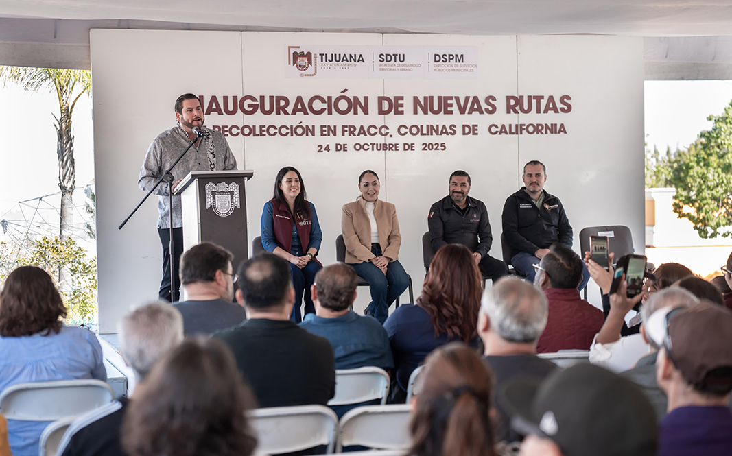TIJUANA.- En cumplimiento al compromiso de fortalecer los servicios públicos y elevar la calidad de vida de las familias tijuanenses, el presidente municipal, Ismael Burgueño Ruiz, puso en marcha 19 nuevas rutas de recolección de basura en el fraccionamiento Colinas de California, acción que beneficiará a más de 22 mil habitantes de esta zona.
